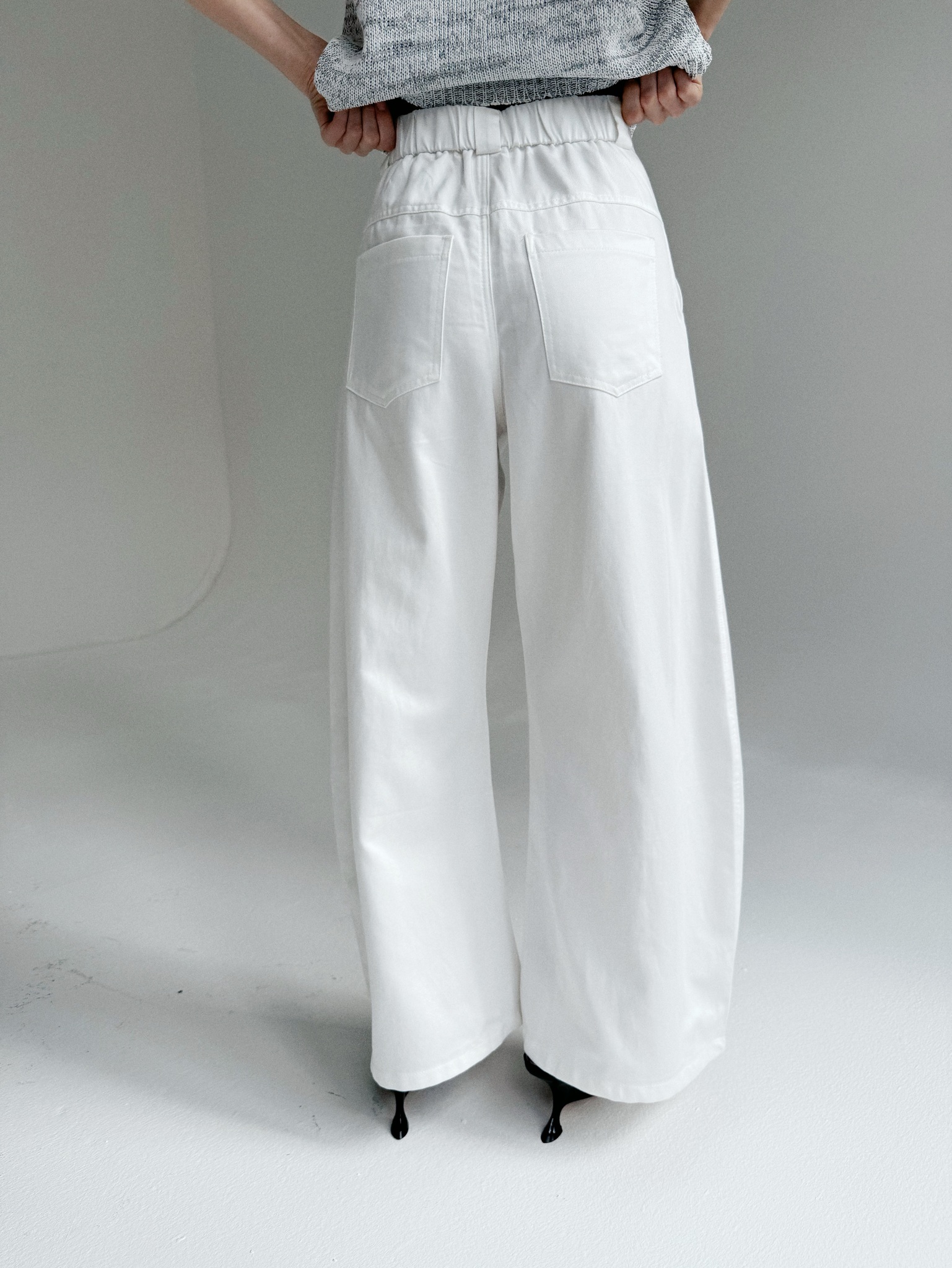 • Высокая посадка на мягкой резинке делает брюки максимально удобными.
